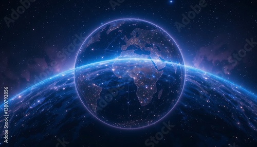 earth, glowing, planet, space, sphere, city, shining, night, orbit, earth, global, continent, africa, europa, asia, light, urban, future, technology, network, digital, connection, satellite, communication, celestial, astronomy, universe, star, outer space, background, cosmic, exploration, science, abstract, graphic, illustration, element, render, design, art