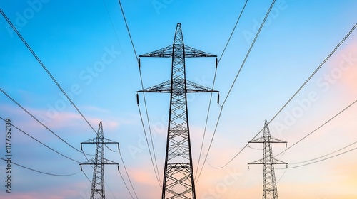 landscape, rural, power, electricity, transmission, tower, grid, pylon, infrastructure, energy, electric, utility, pole, sunset, dusk, sky, line, cable, wire, technology, nature, environment, silhouette, outdoors, scenic, countryside, serene, peaceful, electrical, pylon