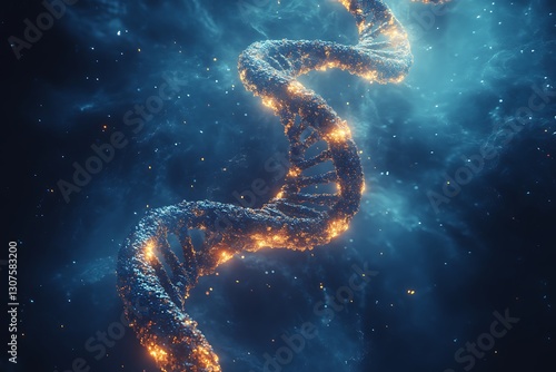 deoxyribonucleic acid, helix, science, biology, genetic, abstract, background, texture, metallic, fiery, glowing, ember, spark, particle, space, universe, cosmic, dark blue, futuristic, innovation, technology, medicals, health care, research, digital artwork, illustration, design, artwork, vibrant, dramatic, energy, power, light, bright, detailed, hi-res, science fiction, fantasy, molecular