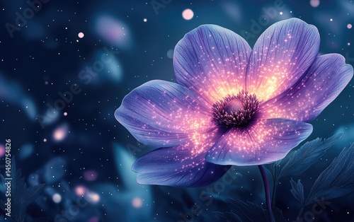 flower, glowing, night, garden, magical, fantasy, nature, bloom, flower petals, light, purple, dark, background, sparkle, shine, beauty, blossom, flora, plant, mystical, enchanting, dreamy, surreal, vibrant, colours, romantic, delicate, elegant, art, design, wallpaper, image, illustration, abstract, texture, fairy, whimsical, serene, peaceful, calmness, hope, wonder, inspiration