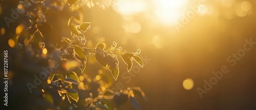 Glowing golden leaves in the warm sunlight