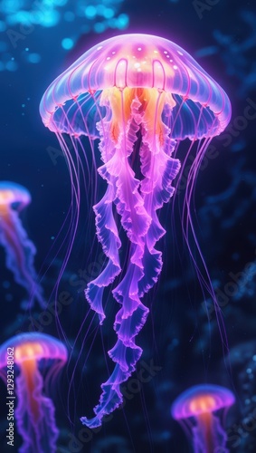 jellyfish, underwater, ocean, sea, marin, life, aquatic, animal, nature, wildlife, glowing, pink, blue, purple, tentacle, water, deep, photo, closeup, transparent, medusa, invertebrate, coral, reef, tropical, exotic, beautiful, artistic, vibrant, colourful, background, wallpaper, ocean life, oceanic, depth
