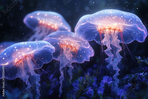 Glowing Jellyfish Underwater Scene in the Black Sea with Bioluminescent Light and Dreamy Composition