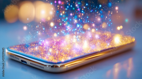 phone, light, glow, glistering, sparkle, abstract, technology, mobile, device, communication, digital, connection, network, modern, smart, futuristic, surface, blurred, background, colourful, vibrant, bright, illuminated, shine, shimmer, energy, magic, fantasy, innovation, entertainment, creativity, imagination, design, art, texture, gold, blue, purple, yellow, bokeh, blur, soft, sharpened, lens, dreamy, aethereal, celestial, cosmic, galaxy