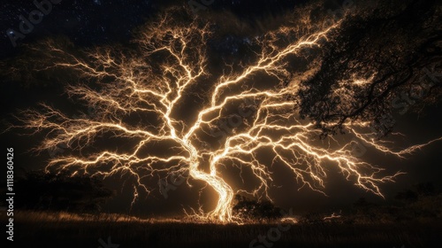 Glowing lightning tree at night.
