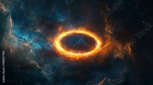 Glowing Nebula with Neon Ring in Celestial Space Surrounded by Stars and Galactic Clouds