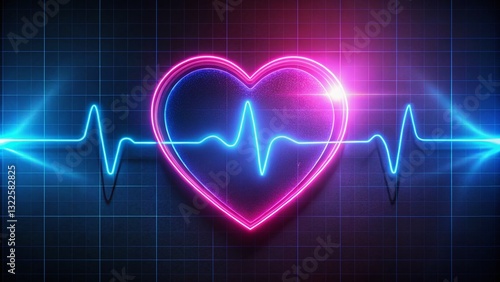 Glowing Neon Heart Pulse: EKG Monitoring & Emergency Medical Concept