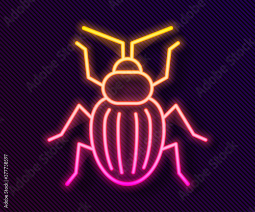 Glowing neon line Chafer beetle icon isolated on black background. Vector.