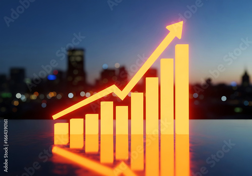 growth, finance, business, economy, success, profit, investment, stock, market, datum, analysis, chart, graph, upward, trend, arrow, city, skyline, dusk, night, urban, progress, development, performance, statistic, digital, concept, illustration, abstract