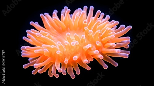 anemone, sea, ocean, coral, reef, invertebrate, animal, marin, life, underwater, tentacle, orange, glow, light, dark, background, black, vibrant, colourful, nature, wildlife, biology, zoology, aquatic, organism, beauty, elegance, delicate, fragile, aethereal, mesmerizing, fascinating, stunning, spectacular, wonder, wonders, mysterious, magical, radiant, aglow, illuminating, bright, high-coloured, colours, hue, texture, pattern