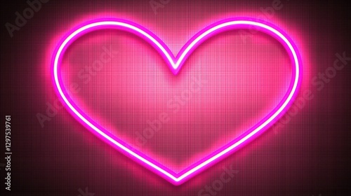Glowing Pink Heart On Dark Pink Textured Backgrounds With Grid Pattern And Neon Light