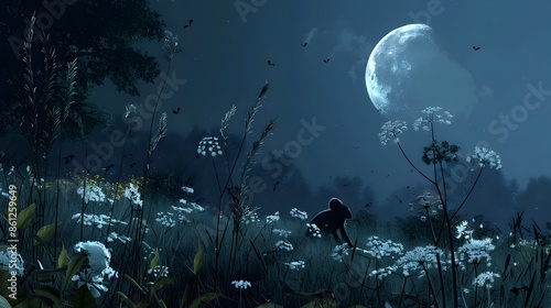 night, moonlight, nature, landscape, plant, flower, nocturnal, wildlife, animal, fauna, flora, field, meadow, grass, glow, mystical, aethereal, tranquil, serene, peaceful, atmospheric, moody, dreamy, fantasy, magic, dark, sky, star, moon, silhouette, scenic, outdoors, environment, mysterious, magical, enchanting, captivating, alluring
