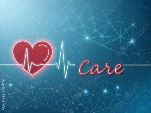 Glowing red heart with pulse line symbolizes nursing care on Nurses Day