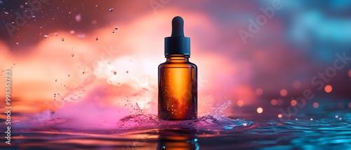 serum, bottle, water, glowing, dropper, liquid, surface, colourful, abstract, dripped, splash, serene, calm, beauty, product, detail, nature, freshness, transparent, luxury, aesthetic, shine, composition, photo