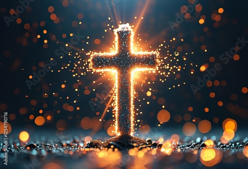 cross, christianity, faith, hope, belief, religion, spiritual, divine, light, god, jesus christ, holy, sacred, symbol, particle, sparkle, glow, aglow, bokeh, dark, background, abstract, texture, energy, power, peace, love, salvation, redemption, grace, mercy, forgiveness, sacrifice, resurrection, heaven, glory, spirituality, religious, christian, catholic, protestant, orthodox, belief, worship, prayer, faithfulness, devotion, inspiration, hopeful