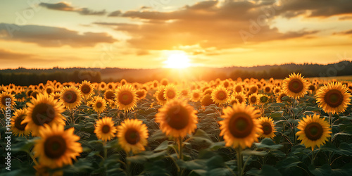 sunflower, field, gold, sunset, warm, summer, flower, glow, beauty, ambient, scenic, sunlight, peaceful, radiant, soft, atmosphere, joy, brightness, floral, countryside, evening, bloom, calmness, colourful, happy, dream, natural, sunshine, landscape, serenity, dreamy, yellow, vibrant, flower petals, sun ray, garden