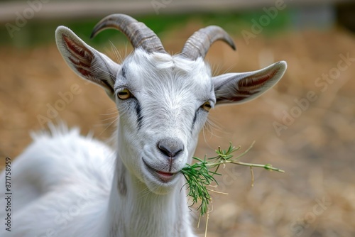 Goat Farm Portrait: Domestic Animal with Horns in Farm Setting