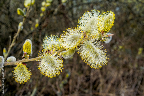 pussy willow, willow, plant, flora, floral, floristic, garden plant, flower, blossom, bloom, blooming, beautiful, beauty, shrub, bush, ornamental plant, floriculture, gardening, nature, natural, outdoors, wild plant, garden, park, spring, colourful, closeup, yellow