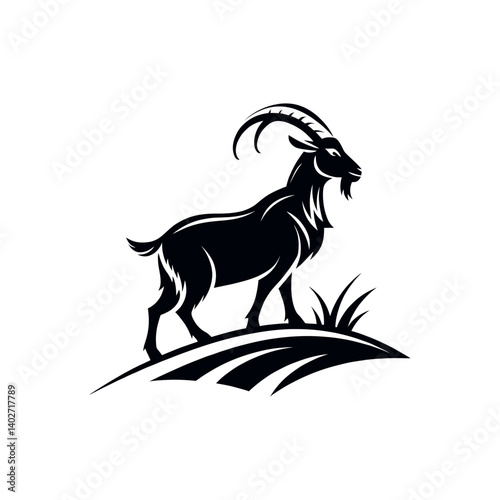 goat,goat face silhouette logo vector line art logo design