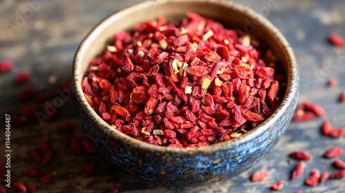 Goji berry granola in a rustic bowl highlighting its vibrant color and healthy ingredients for nutritious snack options.