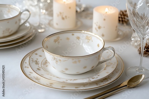 elegant, porcelain, tea, cup, dinnerware, gold, luxury, fine, tableware, set, christmas, decor, festive, pattern, detail, white, dish, service, dinner, design