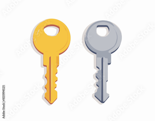 key, key, gold, silver, metal, icon, illustration, graphic, cartoon, flat, design, white background, nobody