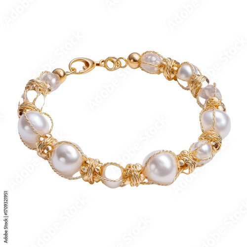Gold bracelet with pearls and beads isolated on transparent White background png