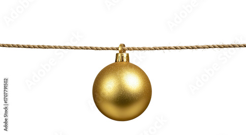 ornament, gold, christmas, ball, hanging, rope, string, festive, holiday, decoration, sphere, round, light, brown, natural, simple, classic, texture, decorative, object, isolated, black, background, contrast, design, detail, close, up, geometric, shiny, smooth, metal, decor, craft, art, image