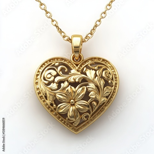 Gold heart pendant necklace floral design jewelry fashion accessory love gift for her valentine's day present