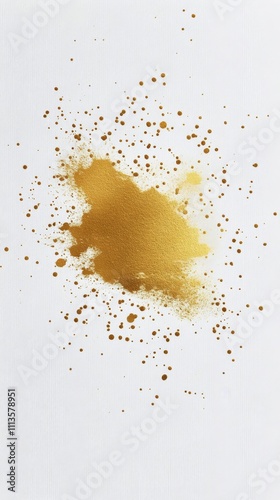 Gold paint splatter on white canvas creating an artistic expression of modern creativity