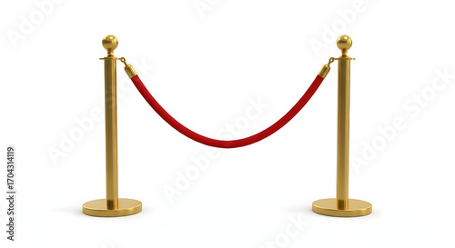 Gold Stanchions with Red Velvet Rope — Event Barrier and VIP Queue Divider, Elegance and Crowd Control Accessory on White Background