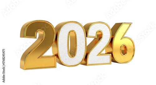 Golden 3d numbers 2026 isolated on transparent background