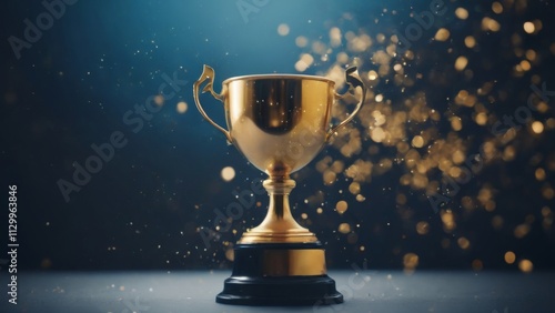 Golden and Black Trophy Cup on Bokeh Background with White Dots Celebration Concept