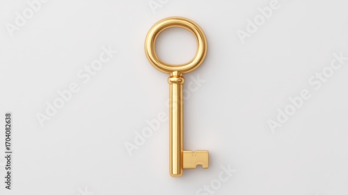 Golden antique key on a white background showcasing elegance and craftsmanship perfect for themes of security, mystery, and unlocking potential in various projects.