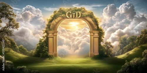 heaven, gate, arch, gold, cloud, landscape, idylli, peaceful, serene, sunrise, tree, nature, sky, mystical, aethereal, fantasy, magical, spiritual, divine, paradise, pathway, journey, hope, light, beauty, calmness, dreamscape, majestic, vibrant, colours, picturesque, green, gold, sun, cloudscape, vista, view, scenery, wonderland, dream, imagination, inspiring, uplifting, breathtaking, remarkable, superb, extraordinary, exceptional