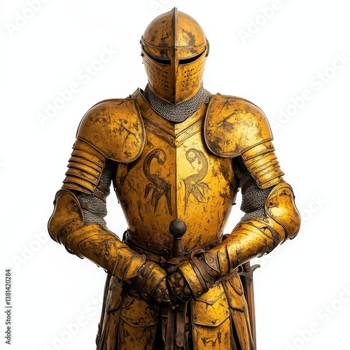 Golden armor-clad medieval knight featured in a close-up half-body portrait, isolated on a transparent background, in PNG image format