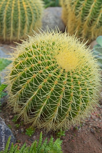 Golden barrel cactus (echinocactus grusonii) also known as golden ball or mother-in-law's cushion, is native to east-central Mexico.