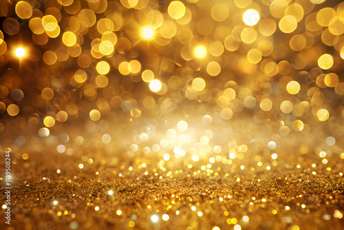 Golden Bokeh Background. Sparkly Glitter Texture for Festive Designs