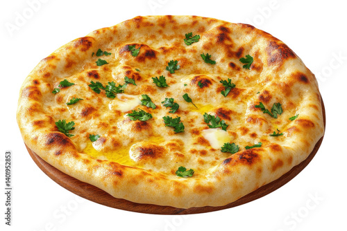 Golden brown butter naan fresh parsley delicious Indian flatbread appetizing aroma perfect texture