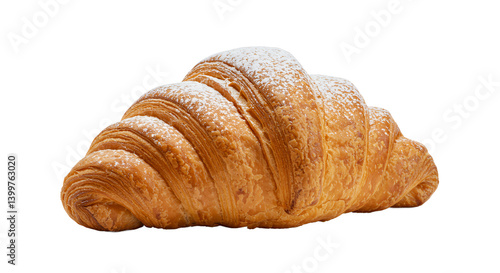 Golden Brown Croissant Sprinkled with Powdered Sugar Isolated on Transparent Background