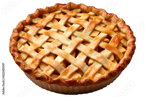 Golden brown lattice top apple pie isolated on transparent background