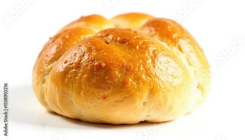 Golden brown, perfectly baked bun isolated on white , bakery, photography
