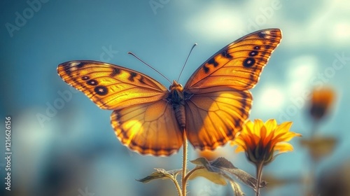 butterfly, flower, meadow, sunny, gold, nature, insect, wing, spring, summer, beautiful, orange, yellow, garden, wildlife, closeup, macro, floral, background, light, day, colours, beauty, free, design, art, image, photo, animal, plant, green, sky, field, leaf, bloom, bright, hope, life, growth, transformation, serenity, peace
