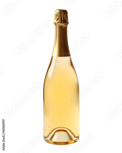 Golden capped champagne bottle isolated on a transparent background
