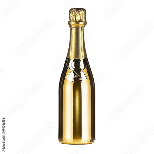 Golden champagne bottle, white isolate background.