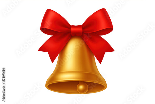 Golden christmas bell with red bow isolated on transparent background, perfect for festive projects and holiday designs