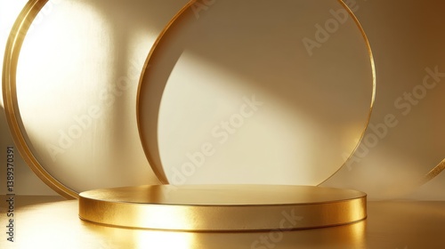 Golden Circular Display Podium, Elegant Background, Minimalist Design