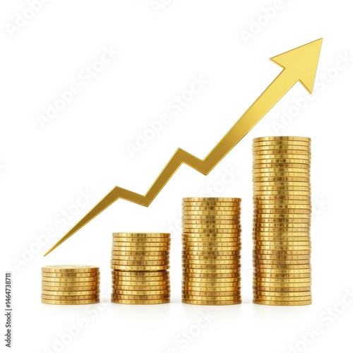coin, gold, stack, arrow, growth, finance, money, investment, wealth, economy, business, currency, banking, success, profit, income, capital, market, diagram, chart, increase, upward, rising, earning, savings, fund, asset, white, background