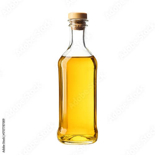 Golden Cooking Oil Filled in Tall Glass Bottle for Culinary Concepts