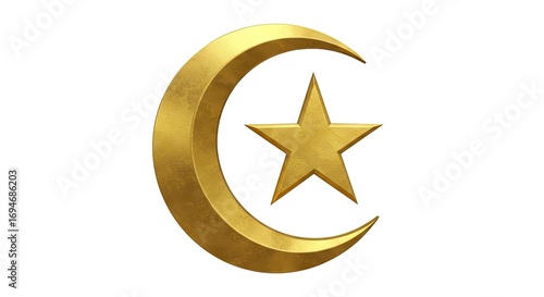 star, moon, crescent, symbol, gold, metallic, texture, geometric, shape, object, render, shiny, astrology, religion, islamic, islam, culture, signs, emblem, design, icon, astronomy, decoration, graphic, isolated, white, background, celestial, universe, sky, night, belief, faith, spirituality, tradition, ramadan, eid, mecca, medina, muslim, prayer, arabic, eastern, oriental, religious, decorative, artistic
